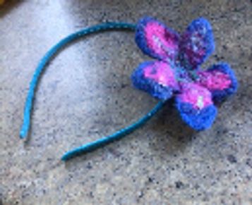 Wet felt these lovely flowers, which can be attached to a headband if you wish.
